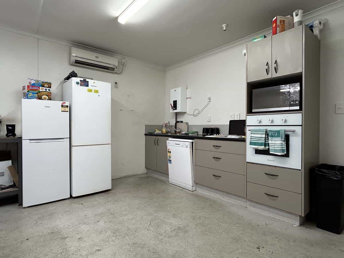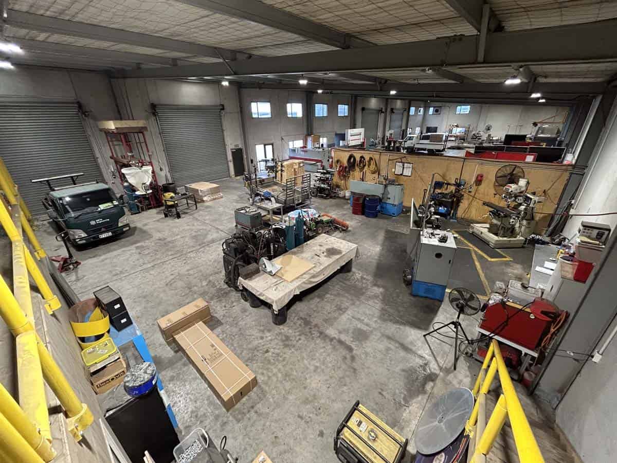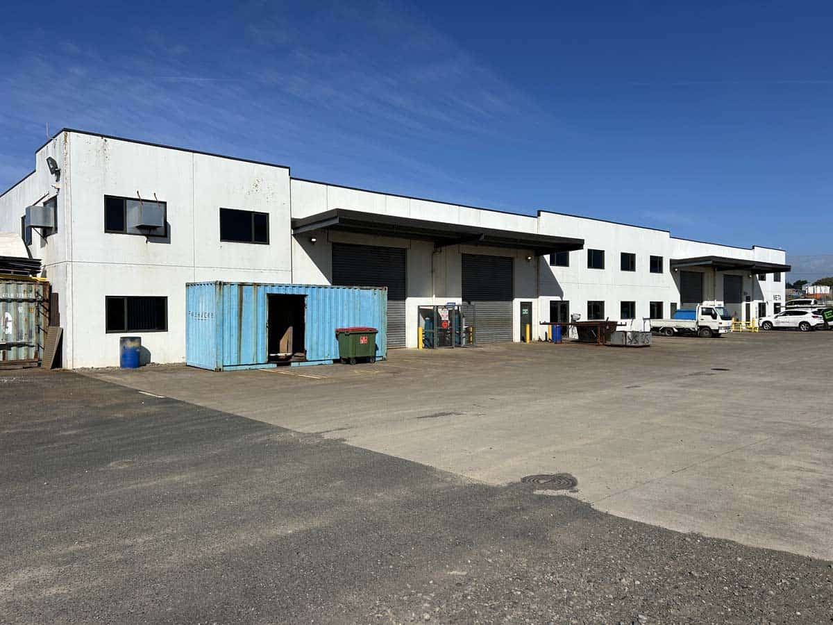 The warehouse is built tough with concrete tilt-slab walls and an A-Grade seismic rating. It has a high stud height, no internal columns, good natural light plus high bay LED lighting, plenty of three-phase power, extractor fans, and four electric roller doors with canopy cover.