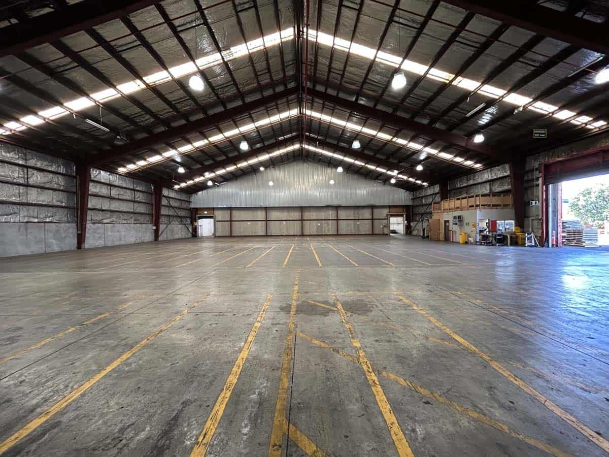 A substantial industrial facility made up of two inter-connected clear span warehouses boasting a very high stud height and two roller doors (one with canopy cover), plus a secure sealed yard with electronic gated access.