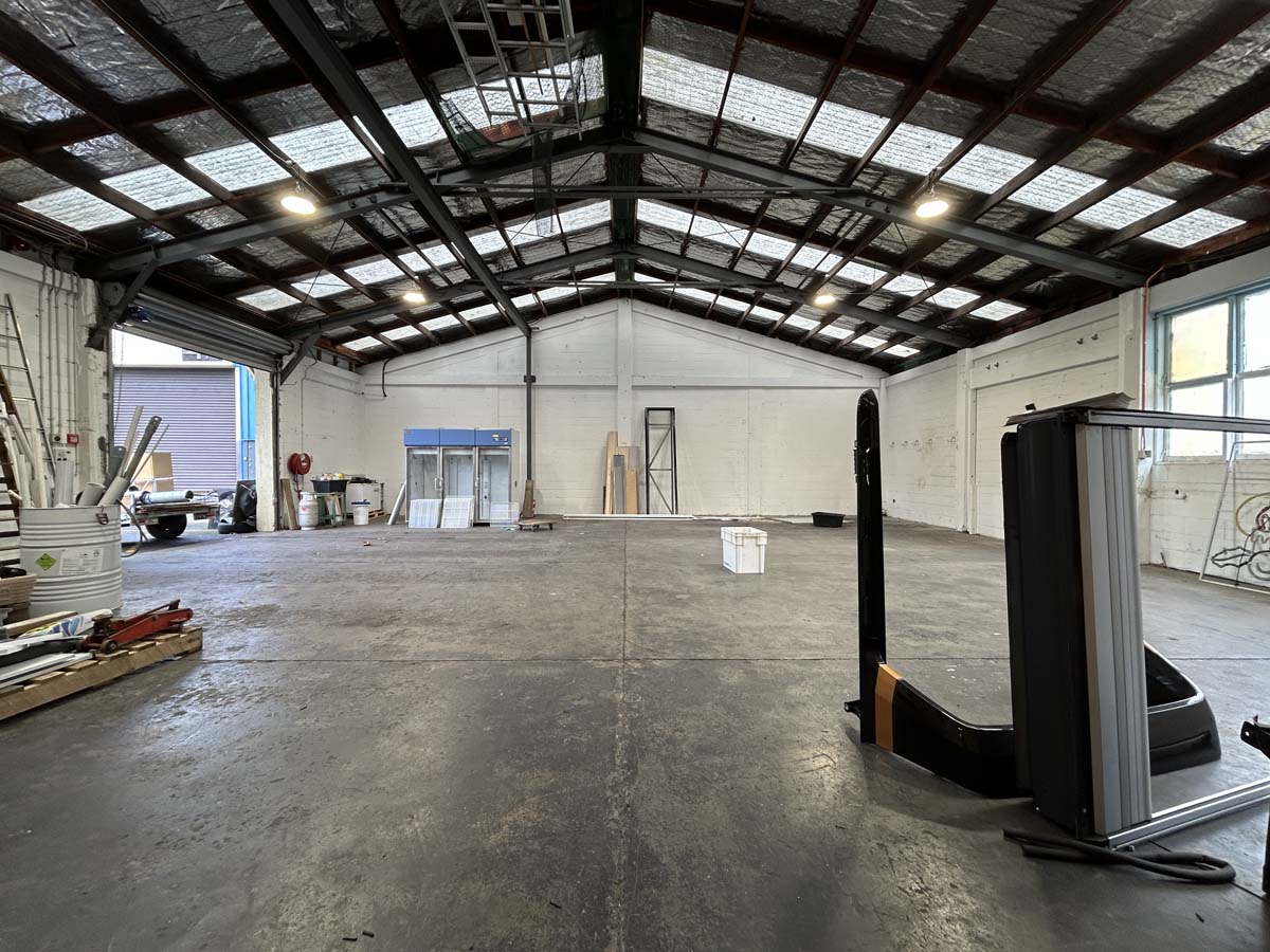 The clear span workshop has electric roller door access and benefits from good natural light plus high bay LED lighting. The stud height is reasonably high and there is three-phase power available in the building.