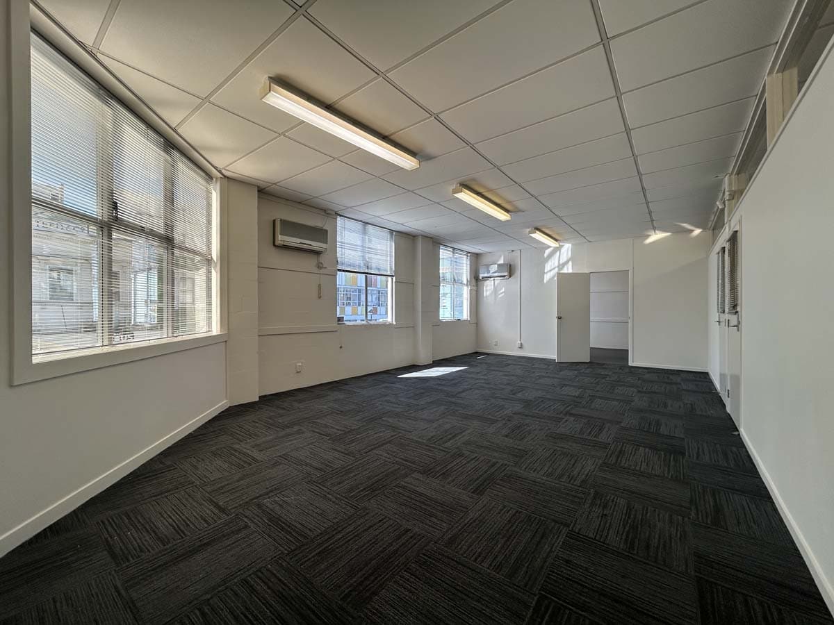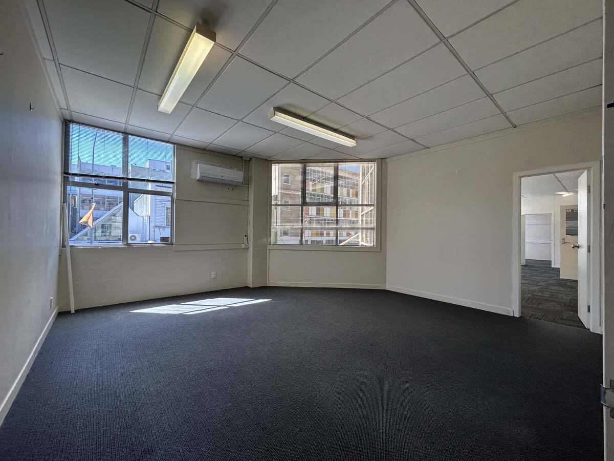 A decent-sized office tenancy on the first floor of the Criterion Building, with a sunny north-facing outlook.